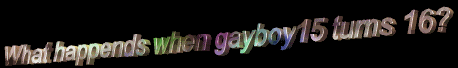 The big question now is "What happends when you turn 16?" I answer when I turn 16 Gayboy15 will be no more. I will fullly forfit all of my work to Snatched Weave Production and give my company credit for what I have done. I will no longer program under the name of Gayboy15 and I will not be Gayboy16. All my work will fall under Snatched Weave Productions. And I will no longer be programming any newer software for AOL unless I am really convienced to. Pride Toolz v.2 has been enuf for me. So in six months yall can kiss me goodbye.